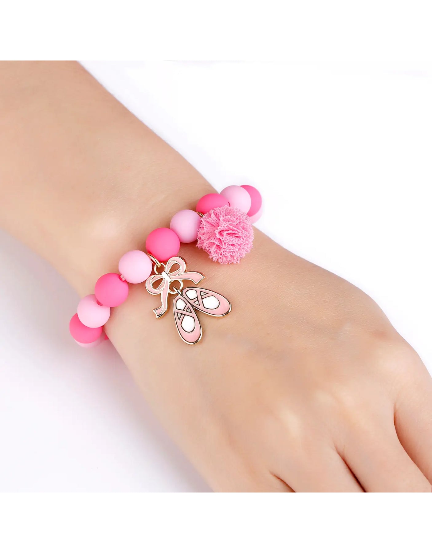 With its pretty ballet shoe and pompom, this piece of jewelry is as fun as it is stylish. Perfect to wear alone or to match with the earrings, this bracelet is the perfect gift for all little fashionistas!